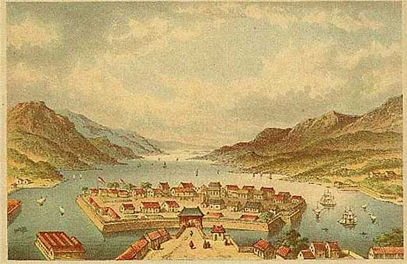 of Dejima in Nagasaki harbor. The island had originally been built in 1636