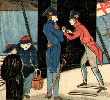 | Students can be assigned to analyze the content of an exhibit currently sponsored by The Netherlands Economic History Archive entitled "Red-Haired Barbarians: The Dutch and other foreigners in Nagasaki and Yokohama, 1800 1865." This exhibit examines 40 woodblock prints (Nagasaki-e and Yokohama-e,) sold to Japanese who were curious about the Dutch community on Deshima Island. This digital presentation is self-described as highlighting "the amazement with which the Japanese looked at Westerners. The Dutch are depicted as pale, ugly, red-haired barbarians with large noses. The ships the Dutch used and the exotic animals they brought caused much astonishment and admiration." In 1858, Americans and other Europeans were granted the same rights as the Dutch. The Dutch settlement in Yokohama is also the subject of the popular illustrations on view as part of a virtual version of this exhibition at http://www.iisg.nl/exhibitions/japaneseprints/index.html or http://www.iisg.nl/exhibitions/japaneseprints/. | |||||||||||||||||||||||