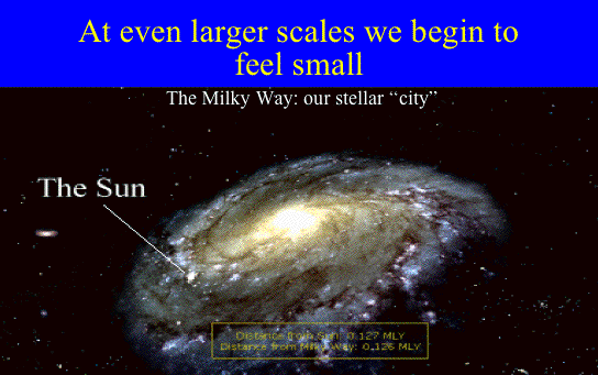 | But if you travel even further away, the sense of isolation and loneliness intensifies, and the perspective begins to change. Eventually, humans, our planet and our history get completely lost. Here is a perspective that suggests the total insignificance of humanity and our history. It is realistic, I suppose, though many also find it depressing. However, some may find awe in the sheer scale and richness of the Universe of which we are a tiny part. | 24 | ||||||||||||||||||||||||||||||||||||||||||